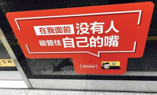 由此看来,现如今品牌的地铁广告越来越“简单粗暴”,这种简单粗暴不是常规意义上的简单粗暴,而是在文案的撰写上更加“接地气、口语化”,也就是学会了“说人话”,画面的设计上也更加简洁明了,这种地铁广告的风格渐渐已成社交时代下的新趋势。