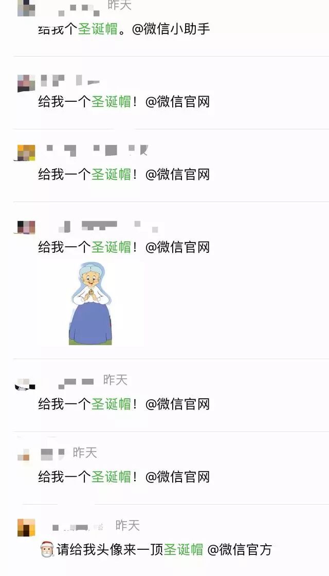 最后这个想必大多数人刚经历过,前几天的圣诞节有没有@ 微信官网 要圣诞帽啊?