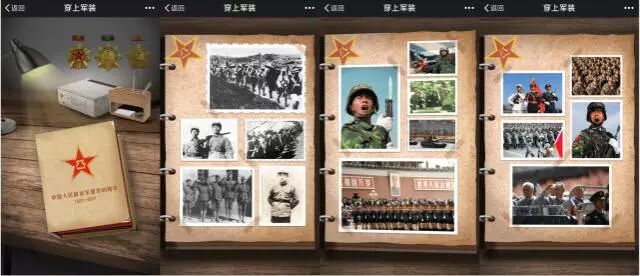 由于操作简单互动性强,加上庆祝建军90周年的火热气氛,众人的参与热情被瞬间点燃,截至31号上午,军装照H5的访问量过亿,平均每分钟有22万张照片生成,大家通过参与此次活动,彰显了自己的爱国情怀。