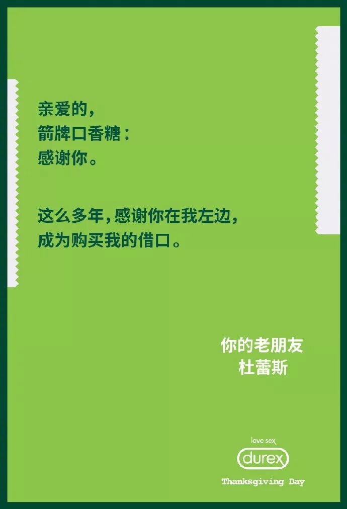 07腾讯公益:“小朋友”的画廊——1元最美公益 时间:8月29日 品牌主:腾讯公益 代理商:安索帕 2017年8月29日,即七夕节第二天,腾讯公益推出的公益活动——“小朋友”的画廊吸引了很多网友的关注,30分钟内吸引过百万人参与募捐,半天内就筹满了1500万的目标金额。而且,这是第一次刷爆朋友圈的公益活动,小编当初也踊跃参与支援了一幅画。 这组刷屏画作,正出自腾讯公益、"wabc无障碍艺途"公益机构联合出品的H5–"小朋友"的画廊。用户参与扫描二维码后,只要1元或输入任意金额,就可以"购买"下心仪的画作,爱心画作可以保存到手机做屏保。 想必这是“朋友圈最美的刷屏”,是极其罕见的史诗般H5公益传播案例,它的刷屏是一个现象级事件,主要是参与门槛低,还能给参与者分享感和成就感。1元钱就能做公益,只要扫码捐助就能获得一个相当于荣誉证书的格式图,晒朋友圈的二次助力,免去被说作秀的“公益晒单”,小编也希望以后能出来更多类似的公益活动。 08华为Mate 10 Pro:手机防水广告——爸爸洗脸 时间:10月23日 品牌主:华为 代理商:未知 此前,一段突出Mate 10 Pro防水卖点的广告在微博上曝光,获众多网友转发。 视频中,讲述了一位消防员在执行任务后和妻女用手机联络的画面,视频中,女儿看到手机上爸爸的照片后,便起身拿起手机对着水龙头洗了起来,说道:“爸爸你的脸脏了,我给你擦擦脸”,让人瞬间感动飙泪。 打破常规广告套路。不是直接将手机扔进水中来突出产品的防水效果,而是嫁接在一个温馨的小故事中来突出防水的特点,时间短简洁明了,很容易被大众接受。一家人拿着华为手机交流,展现了手机品牌,女儿为爸爸洗脸,巧妙的突出了产品防水的核心卖点。不生硬,不违和,浑然一体简直成了原生广告的典范,自然而然,消费者就记住了手机的品牌——华为Mate 10 Pro。 09杜蕾斯:感谢你 时间:11月23日 品牌主:杜蕾斯 代理商:环时互动 11月23日,适逢西方感恩节,杜蕾斯上演了一出“十三撩”,事先未通知绿箭等13个品牌,用“感谢你”单方面开撩,各大品牌的礼尚往来,演变成一场全民围观的互撩。 杜蕾斯作为借势届的头号老司机,今年的地位依然没有被撼动,这次感恩节的借势杜蕾斯机智地做了一波品牌联动,用感谢信的形式在迎合节日气氛的基础上推陈出新,海报文案言简意赅且相当内涵,让受众读完秒懂,更是精准把握双方品牌的特点与关联性,带到对方的同时还不忘自夸,最终实现多赢目的。 这次杜蕾斯与众品牌的互撩堪称一出“年度感恩大戏”,这一切带来的大量的品牌曝光与好评可以说是送给合作各方最好的感恩节礼物了。包括绿箭、德芙、士力架、宜家等,被撩的品牌们也纷纷机智回应,随后还有不少品牌主动加入,出现一场文案狂欢。 10微信:请给我一顶圣诞帽 时间:12月22日(开始兴起) 品牌主:微信用户 代理商:圣诞头像小程序、天天P图各类制图应用